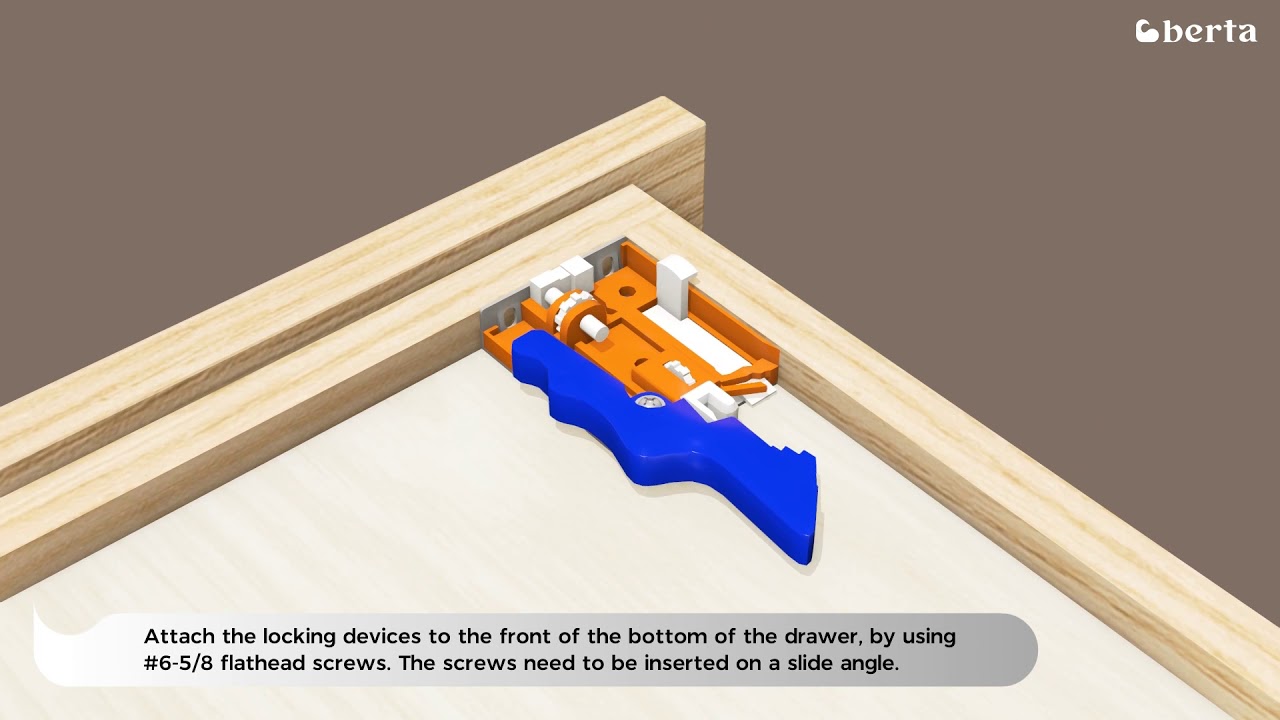 - Attach the locking devices to the front underside of the drawer.